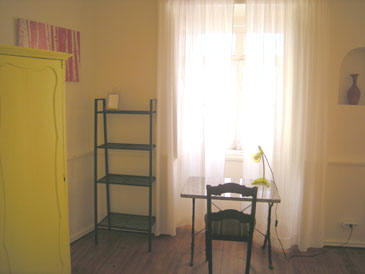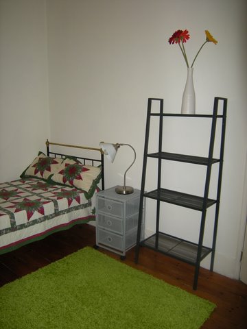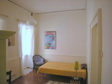to the street, bed 1.20m, clothes chest for extra storage.