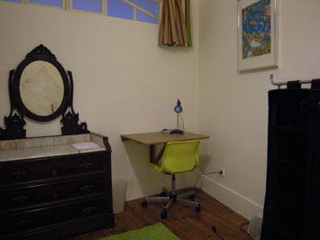 The simple room has no windows to the street.